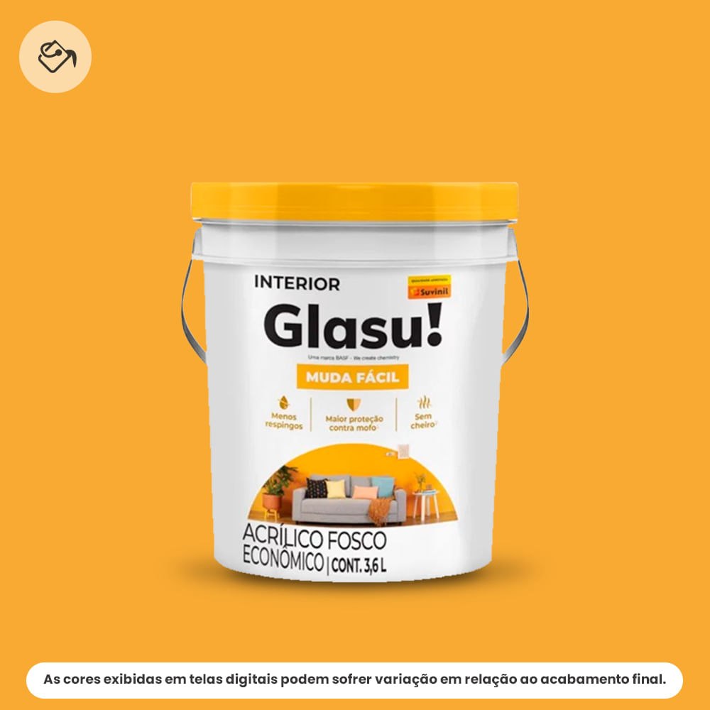 Tinta Acrílica Econômica Fosca Balde 3,6 L Muda Fácil Amarelo Ouro Glasu Suvinil