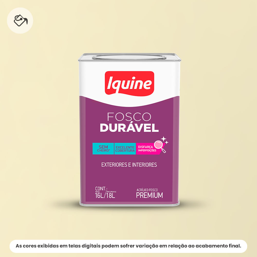 Com uma excelente durabilidade, a Tinta Iquine resiste ao desgaste do dia a dia, mantendo suas cores vibrantes por muito mais tempo. Além disso, sua secagem rápida permite que você finalize a pintura de forma ágil e prática, sem abrir mão da qualidade. A escolha certa para quem busca eficiência e beleza em um só produto!