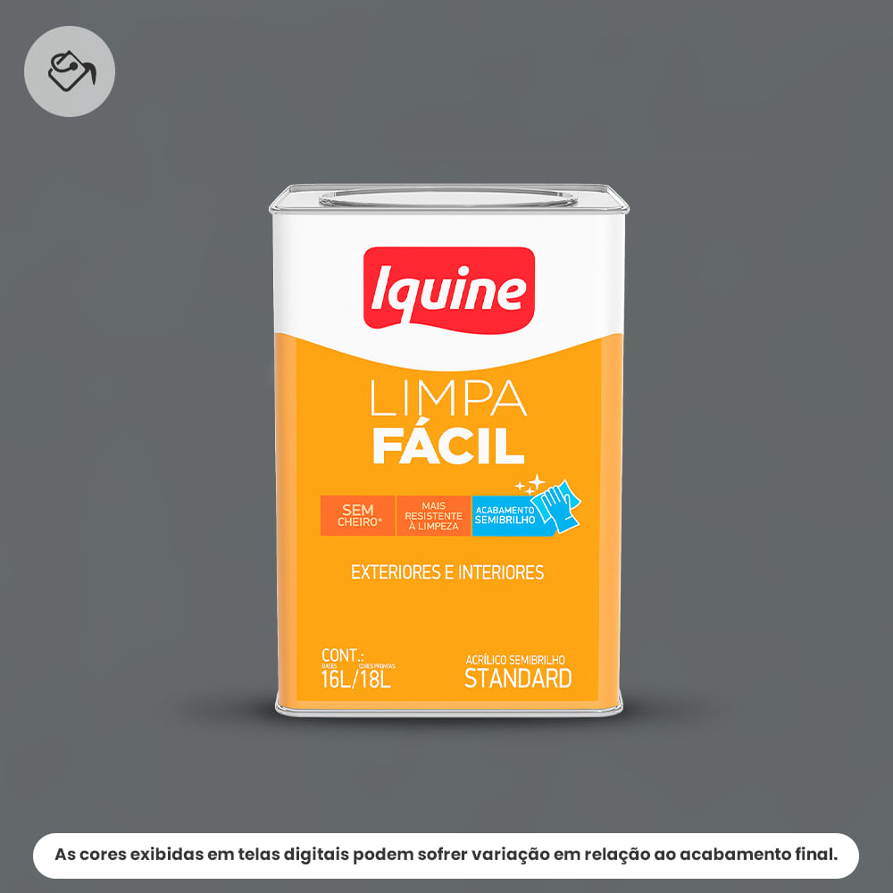 Transforme seus ambientes com a Tinta Acrílica Standard Semibrilho 16L Limpa Fácil 2150 Chumbo Iquine. Ideal para quem busca qualidade e durabilidade, esta tinta proporciona um acabamento semibrilho que realça as cores e texturas das superfícies, garantindo um visual moderno e sofisticado. Sua fórmula inovadora permite uma aplicação fácil e rápida, sendo perfeita para qualquer tipo de projeto, seja em obras novas ou na revitalização de espaços.