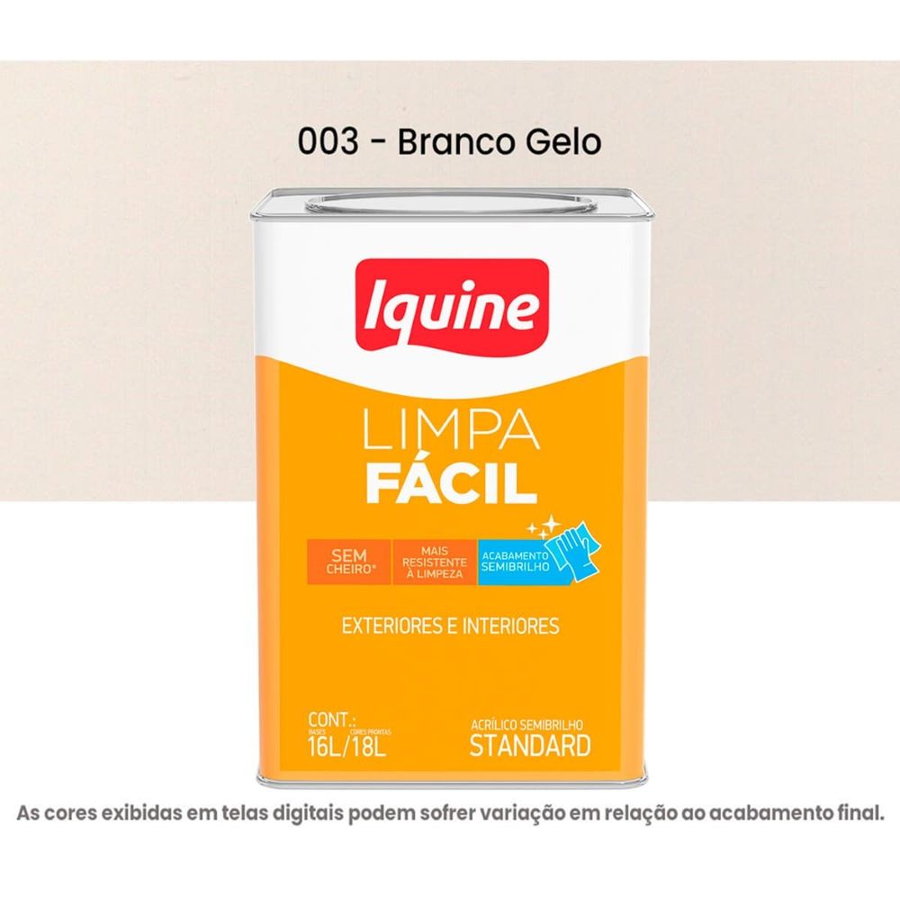 Transforme suas paredes com a Tinta Acrílica Standard Semibrilho 18L Limpa Fácil 003 Branco Gelo Iquine. Ideal para quem busca uma acabamento de qualidade e facilidade de manutenção, esta tinta oferece um brilho sutil que realça a beleza dos ambientes. Sua fórmula inovadora permite que manchas e sujeiras sejam removidas com facilidade, garantindo que suas paredes permaneçam sempre impecáveis.