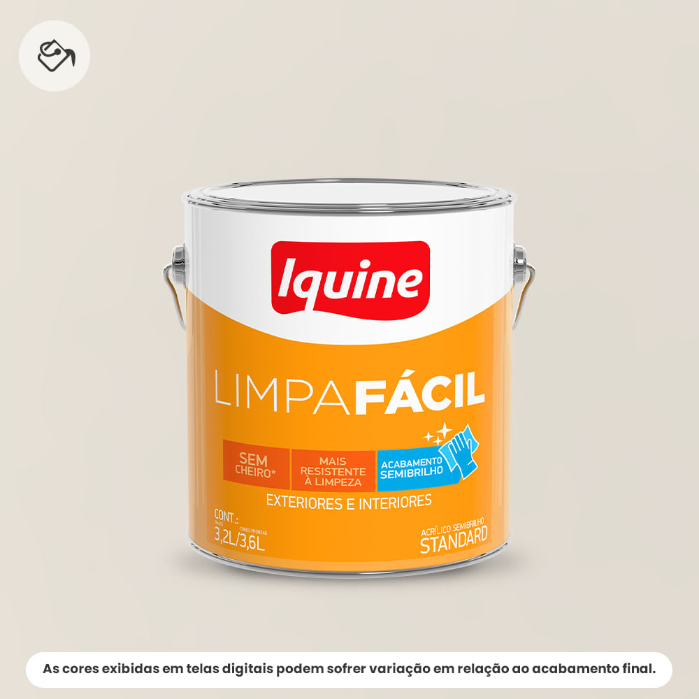 Além disso, a tecnologia Limpa Fácil facilita a remoção de sujeiras e manchas, mantendo suas paredes limpas por muito mais tempo. O tom Branco Gelo traz uma sensação de amplitude e luminosidade ao ambiente, tornando-se a escolha ideal para qualquer espaço da sua casa ou escritório.