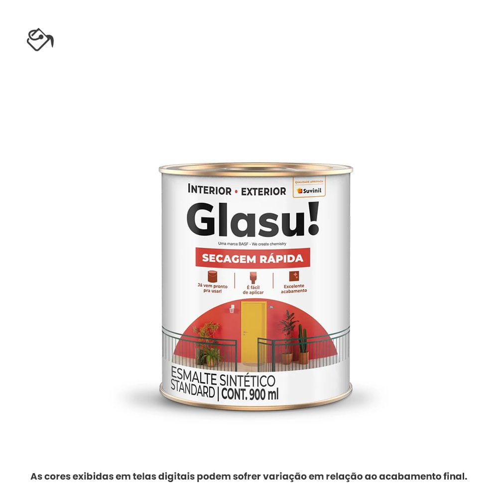 TINTA ESMALTE SINTÉTICO STANDARD BRILHANTE 0,9 L SECAGEM RÁPIDA BRANCO NEVE GLASU SUVINIL